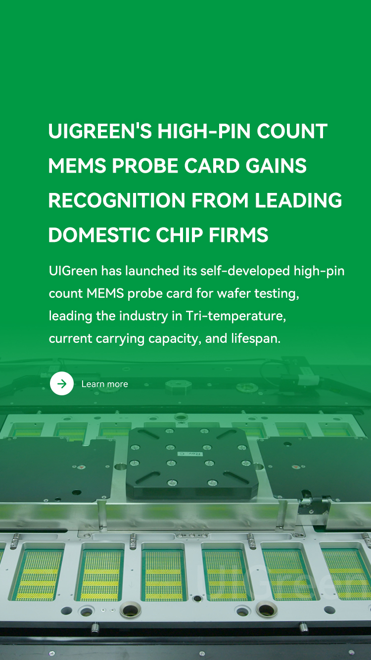UIGreen is a national high-tech enterprise specializing in micro precision manufacturing and a provider of advanced semiconductor testing interface products. The products are widely used in multiple high-end manufacturing fields, such as MEMS, semiconductor chip testing? (Memory/ AI/ CPU/ GPU), automobile & medical.